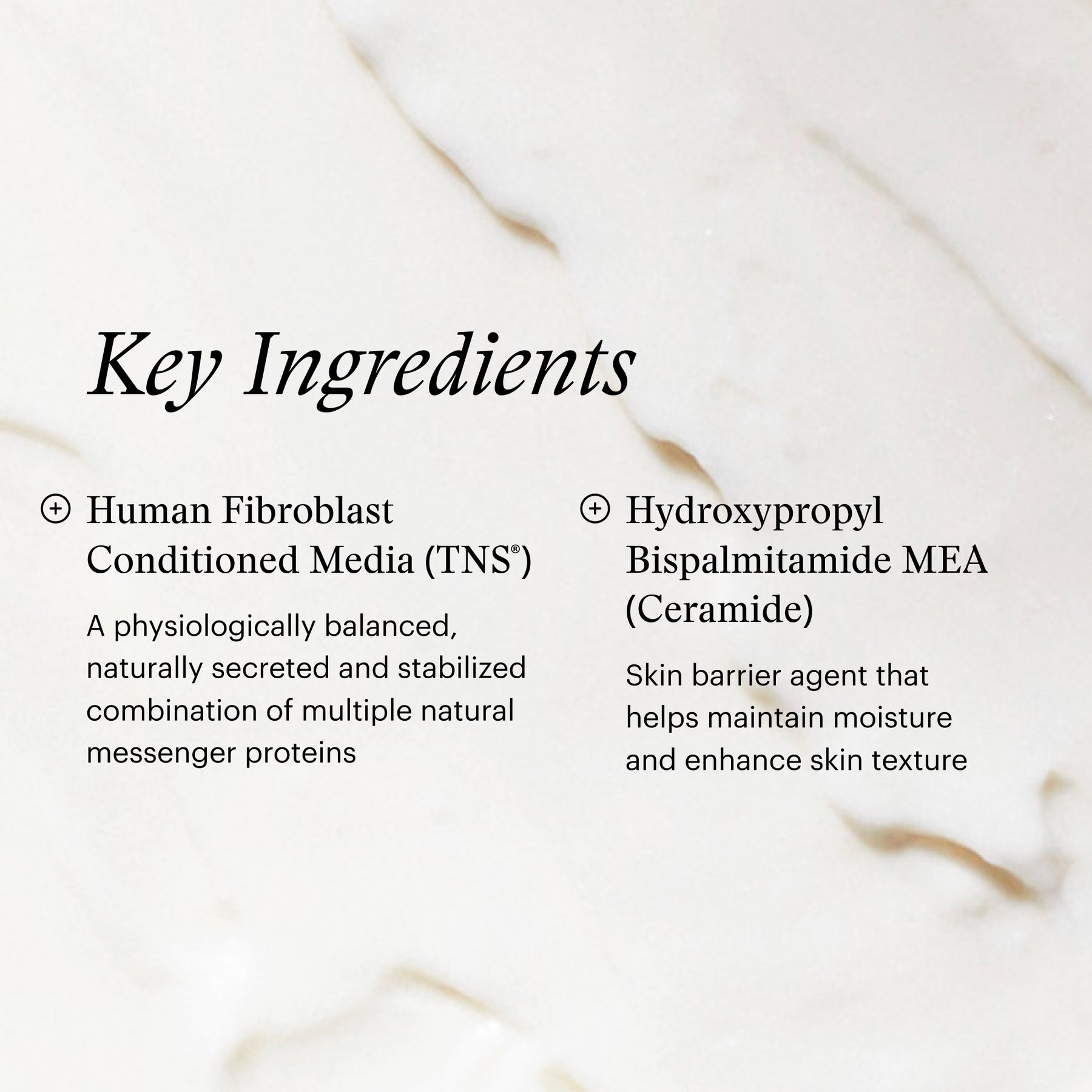 This product contains TNS®, peptides and a patented Ceramide technology to hydrate and help restore your skin's natural barrier function.
