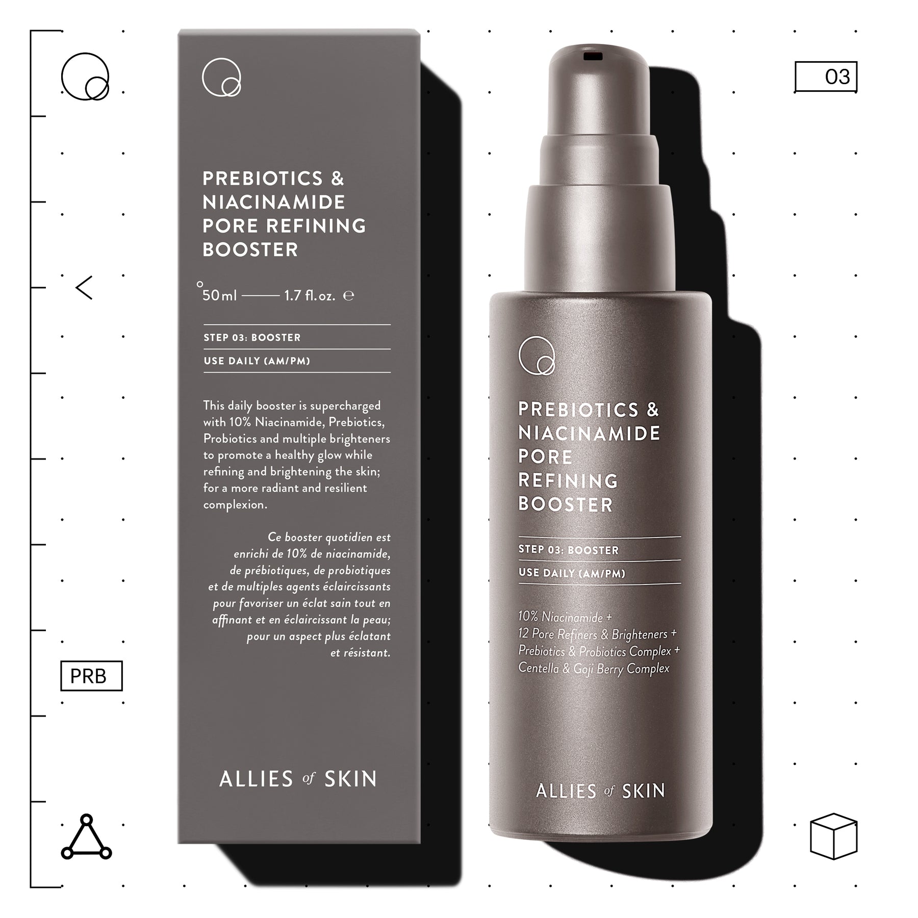 10% Niacinamide The active form of Niacin (also known as Vitamin B3 or Nicotinic Acid) is one of the more stable active ingredients in skincare, with a pH around neutral. Reduces the appearance of pores and fine lines, improves blemish marks, and fades uneven texture. It also improves skin barrier function and its ability to retain moisture.