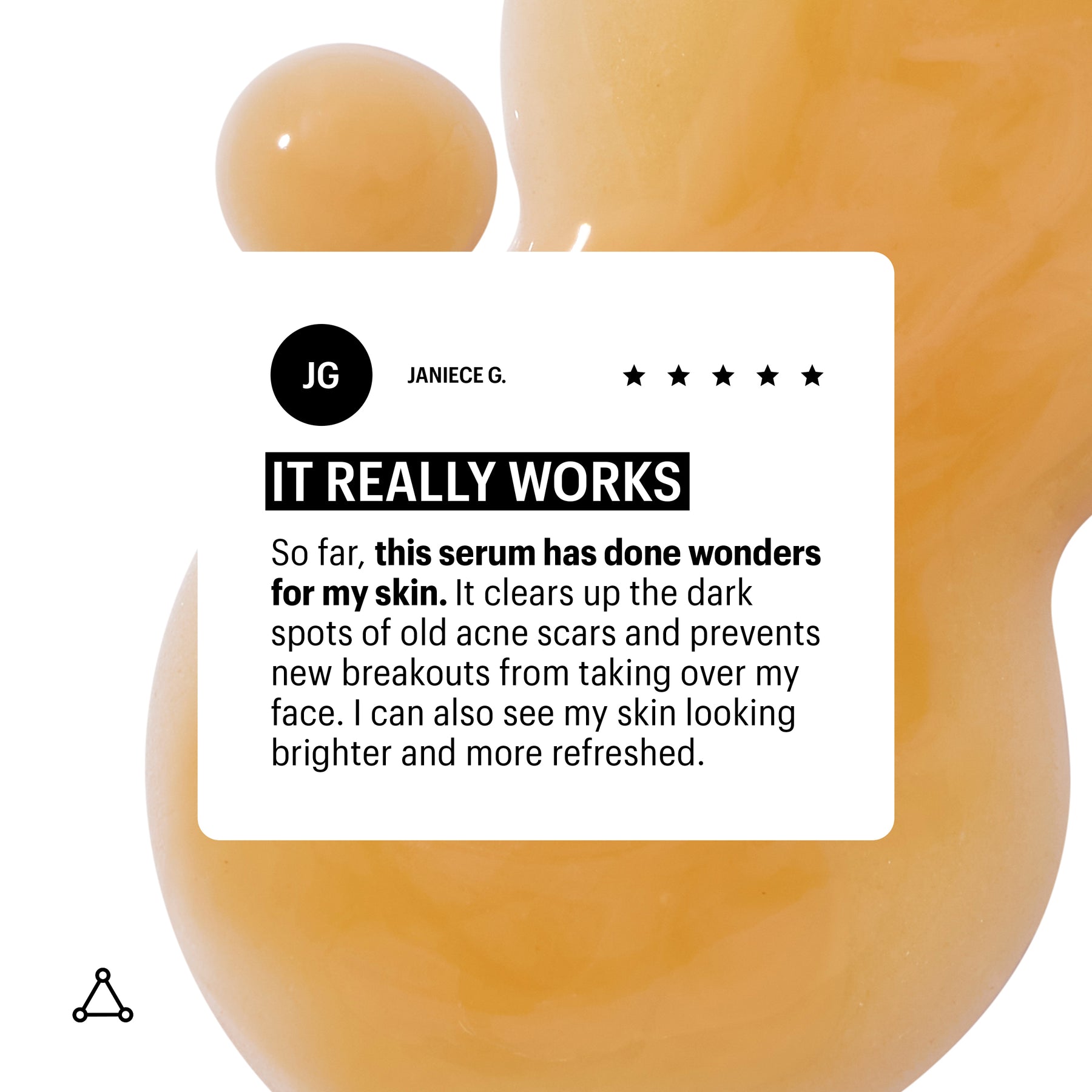 Brightens, evens skin tone, corrects discoloration.