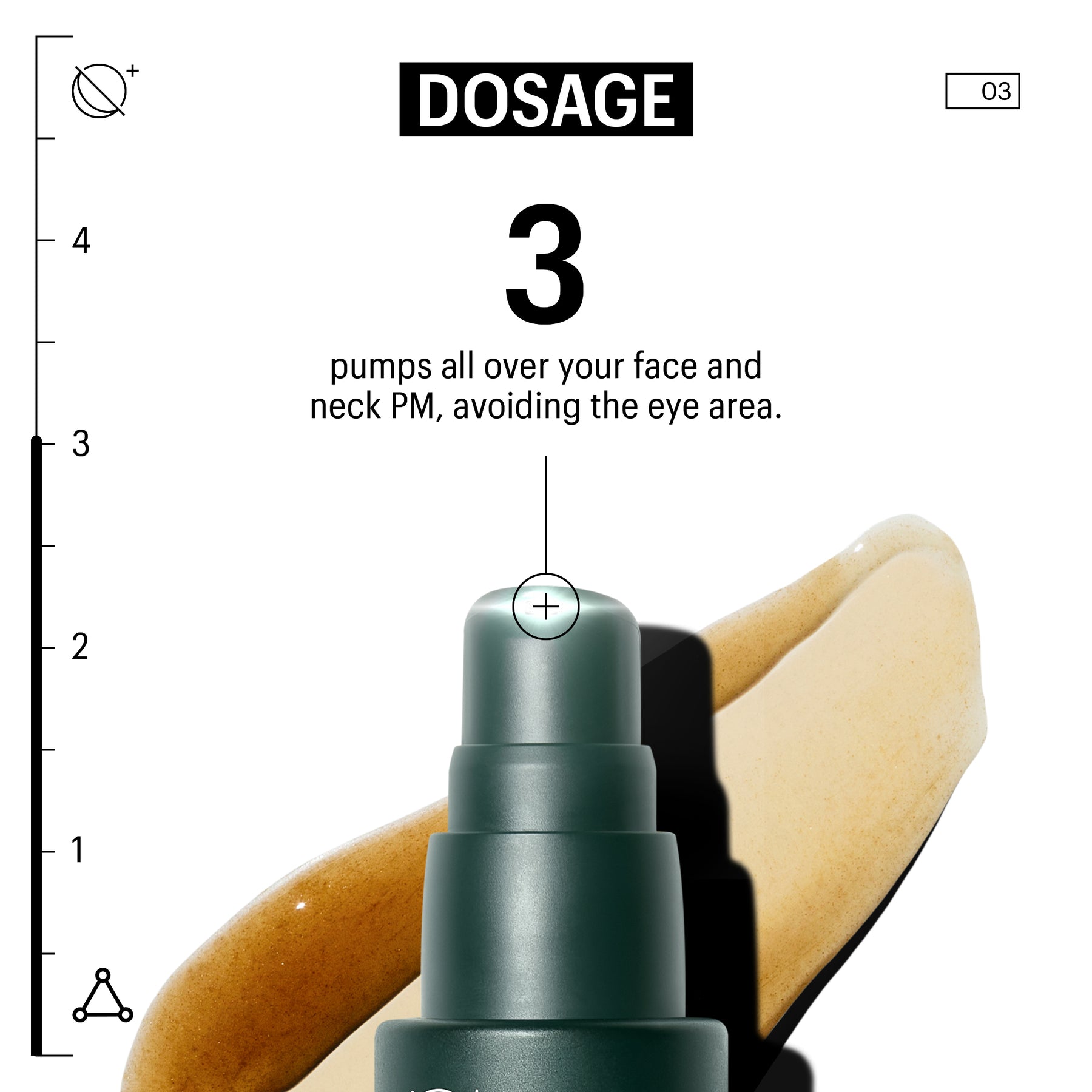 After cleansing and misting or toning, apply 1-3 pumps to your face and neck.